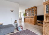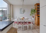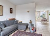 Via de hal stapt u de woonkamer in. Het zitgedeelte is aan de voorzijde gelegen. U kijkt vanaf hier mooi weg over het groen en het water. Vanwege de grote raampartij is de woning heerlijk licht. De woonkamer is afgewerkt met een plavuizenvloer en neutraal afgewerkte wanden.
