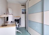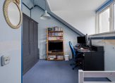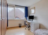 Twee van de drie slaapkamers zijn gelegen aan de voorzijde. De ouderslaapkamer is van een mooi formaat en heeft dan ook voldoende ruimte voor een groot tweepersoonsbed en grote kastenwand. De naastgelegen kleinere kamer is ideaal te gebruiken als kantoor, kinderkamer of kastenkamer. De derde slaapkamer is gelegen aan de achterzijde. Deze is door de huidige bewoners in gebruik genomen als kantoor, maar de ruimte is royaal genoeg voor een tweepersoonsbed en een kast.