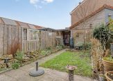 Via de keuken kunt u de achtertuin bereiken. De achtertuin is gedeeltelijk betegeld en gedeeltelijk voorzien van groen en heeft een mooi formaat. De tuin is gelegen op het zuidwesten waardoor u nagenoeg de gehele dag heerlijk de zon in de tuin heeft. Aan de achtergevel is een handmatig zonnescherm bevestigd om de warmte buiten te houden op de hete zomerdagen. Achter in de tuin staat een vrijstaande stenen berging met overkapping. De berging is door de huidige eigenaren in 2004 verhoogd. Via de overkapping verlaat u tot slot de tuin.