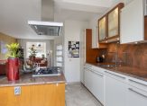 De open keuken met granieten aanrechtblad is een goede kwaliteitskeuken van Siematic. Het kookeiland zorgt voor extra werkruimte en verbinding met de woonkamer tijdens het koken. De keuken beschikt over de volgende inbouwapparatuur:
