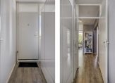 Via de galerij bereik je de voordeur en stap je de entree binnen. Hier is voldoende garderoberuimte en is de moderne meterkast met 6 groepen en 2 aardlekschakelaars te vinden. Via de entree bereik je de ruime tussenhal die toegang geeft tot alle overige vertrekken in het appartement. Ook is er in de tussenhal een ruime bergkast te vinden.