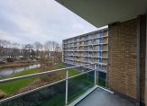 Zowel via de keuken als de hal kunt u de woonkamer betreden. De woonkamer is mooi ruim en licht en geeft toegang tot het balkon op het oosten. Hier kunt u ‘s ochtends heerlijk van de zon genieten en heeft u tevens mooi uitzicht op het groen en water.