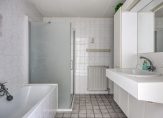 Het sanitair bestaat uit een separate toiletruimte en een badkamer. De badkamer is compleet uitgevoerd met een douche, wastafelmeubel en een ligbad. Hier bevindt zich ook de aansluiting voor de wasapparatuur.