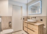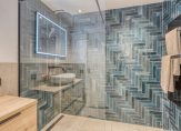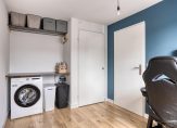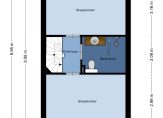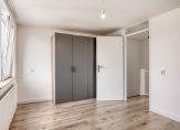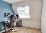 Via de overloop kom je bij de slaapkamers en de badkamer. Beide slaapkamers zijn over de volle breedte van de woning en dus erg ruim. De slaapkamers zijn afgewerkt met gladde wanden en een fraaie lichte laminaatvloer. Daarnaast zijn er monoblockradiatoren geplaatst die zowel kunnen verwarmen als koelen. Zo is de temperatuur in de slaapkamers het hele jaar aangenaam! De inpandige badkamer is in 2022 vernieuwd en helemaal strak afgewerkt met fraaie blauwe en grijze tegels. In de douche tref je een heerlijk ruime inloopdouche met regenkop en handdouche, een fraai wastafelmeubel met waskom, verwarmde spiegel, wandcloset en designradiator.