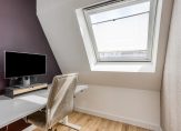 Via een vaste trap kom je op een kleine voorzolder. De zolder bestond oorspronkelijk uit een open voorzolder en een slaapkamer, maar hier zijn nu 3 kamers gemaakt. De grootste slaapkamer is woningbreed en bevindt zich aan de voorzijde. Aan de achterzijde zijn er 2 kamers met beide een groot dakraam. De kleinste kamer is uitstekend geschikt als bijvoorbeeld een werk-, hobby- of rommelkamer. In de andere slaapkamer is er een aansluitpunt voor de wasapparatuur en een vaste kast met daarin de c.v.-ketel (2011). Ook deze verdieping is weer strak afgewerkt met gladde wanden en een fraaie laminaatvloer.