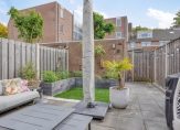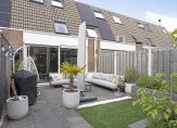Via de grote schuifpui kom je in zonnige tuin op het zuiden met stenen berging en een achterom. De tuin is fraai aangelegd met mooie bestrating, hoge borders en kunstgras. In de zomer kun je hier van vroeg in de ochtend tot ongeveer 20.00 uur heerlijk van de zon genieten!