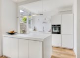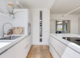 De keuken is een luxe Bulthaup keuken (2020) en is geheel in het wit uitgevoerd. De keuken bestaat uit 2 rechte delen, waarvan 1 groot kookeiland, zodat je tijdens het koken altijd zicht hebt op de woon- en eetkamer. De keuken is van alle gemakken voorzien en bestaat uit de volgende inbouwapparatuur: