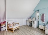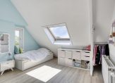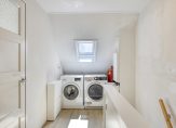 Via een vaste trap kom je op de ruime voorzolder met dakraam en opstelplaats voor de wasapparatuur en de c.v.-ketel. Daarnaast is er een aparte bergruimte gemaakt en is er een luik met vlizotrap naar een bergvliering. Met een nokhoogte van 1,48 is dit een prima plek om hier spullen op te bergen. De zolderkamer bevindt zich over de volle lengte en heeft een groot dakraam en twee zijramen. Achter het knieschot is er extra bergruimte gecreëerd. De ruime en gezellige slaapkamer is afgewerkt met een laminaatvloer.