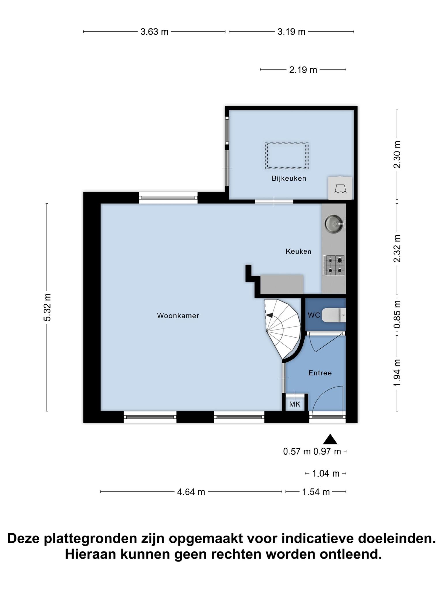 Deze informatie is met zorgvuldigheid samengesteld. Alle opgegeven maten en oppervlakten zijn indicatief. Mochten er onverhoopt onjuistheden staan vermeld dan wordt onzerzijds echter geen enkele aansprakelijkheid aanvaard voor onvolledigheid, onjuistheid of anderszins, dan wel de gevolgen daarvan.