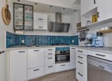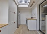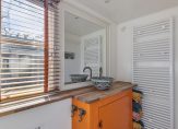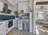 In 2022 is de keuken gemoderniseerd met een nieuw kleurtje, nieuwe afzuigkap, nieuwe combi-ovenmagnetron en betoncire over het aanrechtblad. Ook de gaskookplaat is toen vervangen door een nieuwer exemplaar dat overgenomen kon worden (tweedehands). Hierdoor heeft de keuken weer een fraaie look en feel gekregen. Aansluitend de bijkeuken die eveneens in 2022 is opgeknapt. Een fraaie vloer, frisse witte wanden en moderne stalen deur maken de ruimte helemaal van nu. Erg praktisch met ruimte voor de koel-/vriescombinatie, wasmachine en ook heel veel opbergruimte. Via de bijkeuken toegang tot de tuin.