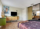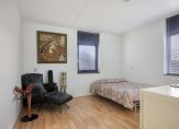 Via de overloop zijn alle vertrekken te bereiken. Hier treft u maar liefst 3 ruime slaapkamers aan! Aan de achterzijde zijn er 2 slaapkamers, waarvan de grootste nu als ouderslaapkamer in gebruik is (ca. 22 m2). Hier is een grote kastenwand met schuifdeuren geplaatst. De andere kamer (ca. 14 m2) is mooi vierkant en heeft extra daglicht door het zijraam. Aan de voorzijde is er een 3e ruime slaapkamer (ca. 18 m2) met eveneens een vaste kastenwand en een extra zijraam. Op de vloer ligt een nette laminaatvloer.