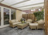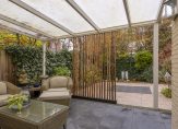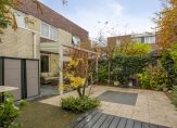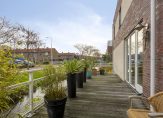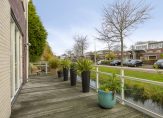 Zowel via de openslaande deuren in de woonkamer als de deur in de keuken is er toegang tot de achtertuin. Aan het huis is er een fraaie, lichte overkapping geplaatst, waar u fijn beschut en droog kunt zitten. De tuin is speels ingedeeld met een kunststof vlonderterras, terrastegels, fraaie borders en diverse bomen. De tuin ligt behoorlijk privé en hier kunt u heerlijk van het middag- en avondzonnetje genieten. Naast de tuin is er ook nog een royaal (ca. 26 m2) zonneterras aan het water. Een prachtige plek met veel zon in de ochtend en begin van de middag! U kunt desgewenst dus altijd wel een plek in de zon of schaduw vinden bij het huis!