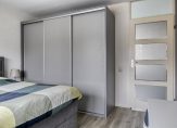 Beide slaapkamers liggen aan de voorzijde van het appartement. Ze zijn ruim van formaat en afgewerkt met dezelfde nette pvc-vloer. De masterbedroom is bereikbaar via de woonkamer, de tweede slaapkamer via de hal. Beide kamers liggen aan de oostzijde, wat de koelere zijde van het complex is.