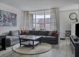 De woonkamer is ruim en licht, met voldoende plek voor een riante zithoek en een grote eettafel. Het gehele appartement is voorzien van een fraaie pvc-vloer en nette wandafwerking. Vanuit de woonkamer bereikt u het zonnige balkon op het westen, waar u vanaf de middag tot in de avond van de zon kunt genieten. Het balkon biedt uitzicht op wat groen en een kleine speeltuin.