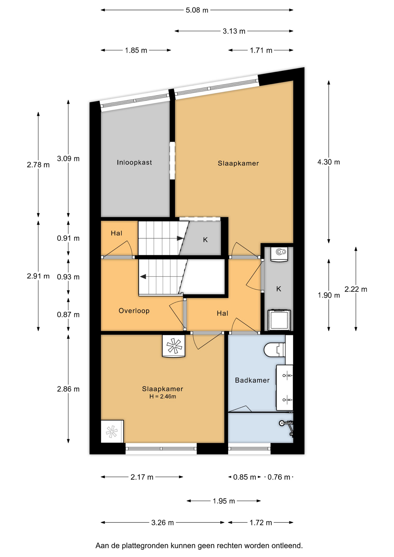 Via de overloop bereik je twee ruime slaapkamers (voorheen drie), waaronder de hoofdslaapkamer met praktische inloopkast. De badkamer is modern afgewerkt en voorzien van een inloopdouche, zwevend toilet, wastafelmeubel en een raam voor natuurlijke ventilatie en daglicht. Daarnaast is er een aparte was- en stookruimte aanwezig.