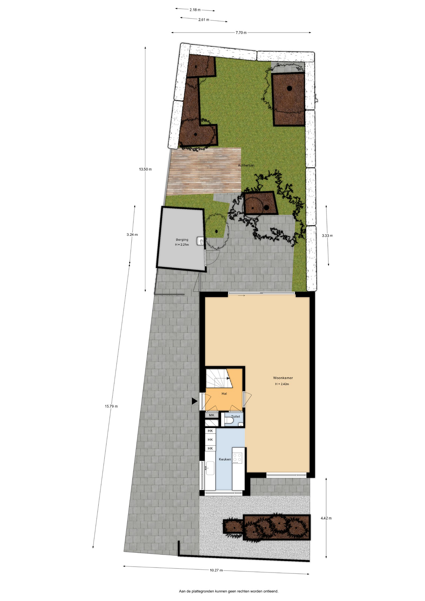 De woning staat op een riant perceel, biedt parkeergelegenheid voor 2 auto’s en heeft een achtertuin op het westen, perfect voor zonnige middagen en avonden. De stenen berging kan desgewenst worden vergroot tot garage, wat je nog meer functionele ruimte oplevert.