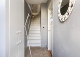Overloop met toegang tot drie goede slaapkamers. De badkamer is uitgevoerd met een douche, zwevend toilet en een wastafelmeubel.