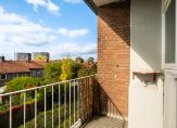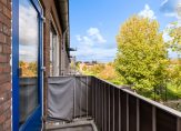 De woning bevindt zich op de tweede verdieping van een verzorgd complex en beschikt over twee balkons, één aan de voorzijde en één aan de achterzijde. Beide zijn bereikbaar vanuit de woonkamer, waardoor je op elk moment van de dag kunt genieten van de zon of juist de schaduw kunt opzoeken. Aan de voorzijde heb je een fijn uitzicht over het plein.