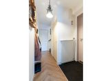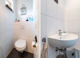 Via de zijtuin kom je binnen in de hal met meterkast, kelderkast met wasmachineaansluiting, trapopgang en een modern toilet met fonteintje.