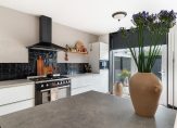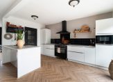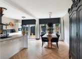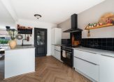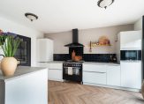 De uitgebouwde woonkeuken (2016) is zonder twijfel een van de highlights van de woning. Voorzien van een schiereiland, diverse Siemens inbouwapparatuur, een Belling gasfornuis met oven en een koel-vriescombinatie. Dankzij de openslaande deuren naar de tuin is dit een heerlijke plek om te koken, te eten en samen te zijn.