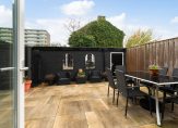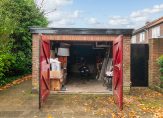 Aan de tuin grenzen de stenen garage en een separate berging. De garage is voorzien van elektra en openslaande deuren en is perfect te gebruiken als opslag, klusruimte of gewoon als parkeerplek.