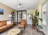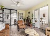 Via het afgesloten portiek bereik je het appartement op de tweede verdieping. De woonkamer is heerlijk licht dankzij de grote raampartijen en voelt ruim en prettig aan. De strakke afwerking, moderne kleurstelling en vinyl vloer zorgen voor een rustige en eigentijdse uitstraling. Hier creëer je moeiteloos een gezellige zithoek om te ontspannen of gasten te ontvangen.