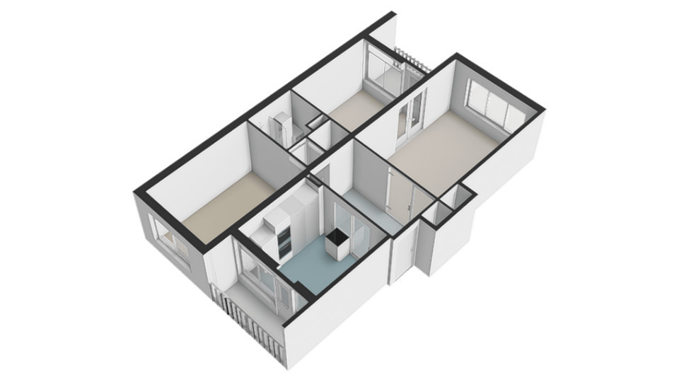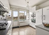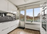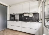 De dichte keuken is opgesteld in een praktische wandopstelling en biedt volop werk- en bergruimte. Uiteraard is de keuken voorzien van alle benodigde inbouwapparatuur. Er is voldoende plek voor een kleine eethoek en via de keuken stap je zo het balkon op perfect voor een kop koffie in de ochtend.