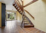 Ruime entree met meterkast, hal, berging en toilet met fontein. Vanuit de hal bereik je de tuingerichte woonkamer en deels open-keuken. Via de wenteltrap in de woonkamer naar de eerste verdieping. De ruime woonkamer heeft een gezellige open haard. Zet de schuifpuien open en je loopt zo de zonnige achtertuin in. In de zomer kun je tot laat buiten eten. De halfopen keuken met diverse inbouwapparatuur zoals koelkast, vriezer, inductieplaat, vaatwasser, combi oven en afzuigkap staat in een prettige verbinding met de woonkamer.
