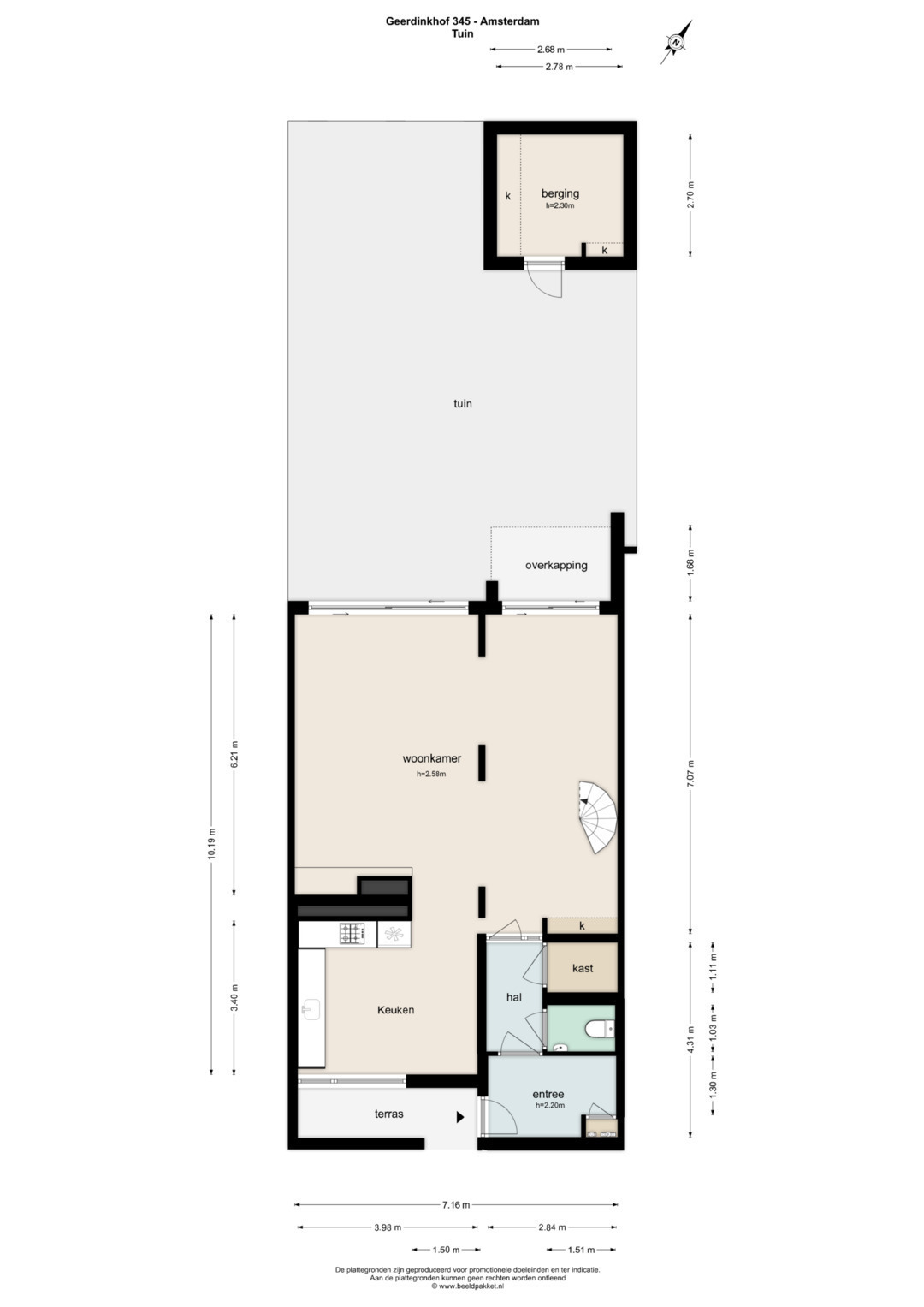 De berging bevindt zich aan de achterzijde van de woning en is voorzien van elektra.