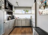 In de open keuken kom je niets tekort: er is een inductiekookplaat met afzuigkap, een ingebouwde combi-ovenmagnetron en een vaatwasser.