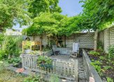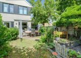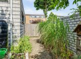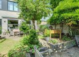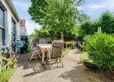 De riante tuin van circa 122 m² is sfeervol aangelegd met veel groen, diverse bomen en planten. Een kronkelend pad leidt je naar een knusse zitkuil achterin de tuin, waar je heerlijk kunt ontspannen. Doordat de tuin op het zuidoosten ligt, geniet je hier de hele dag van de zon. Via een poort aan de zijkant van het huis heb je eenvoudig toegang tot de achtertuin.