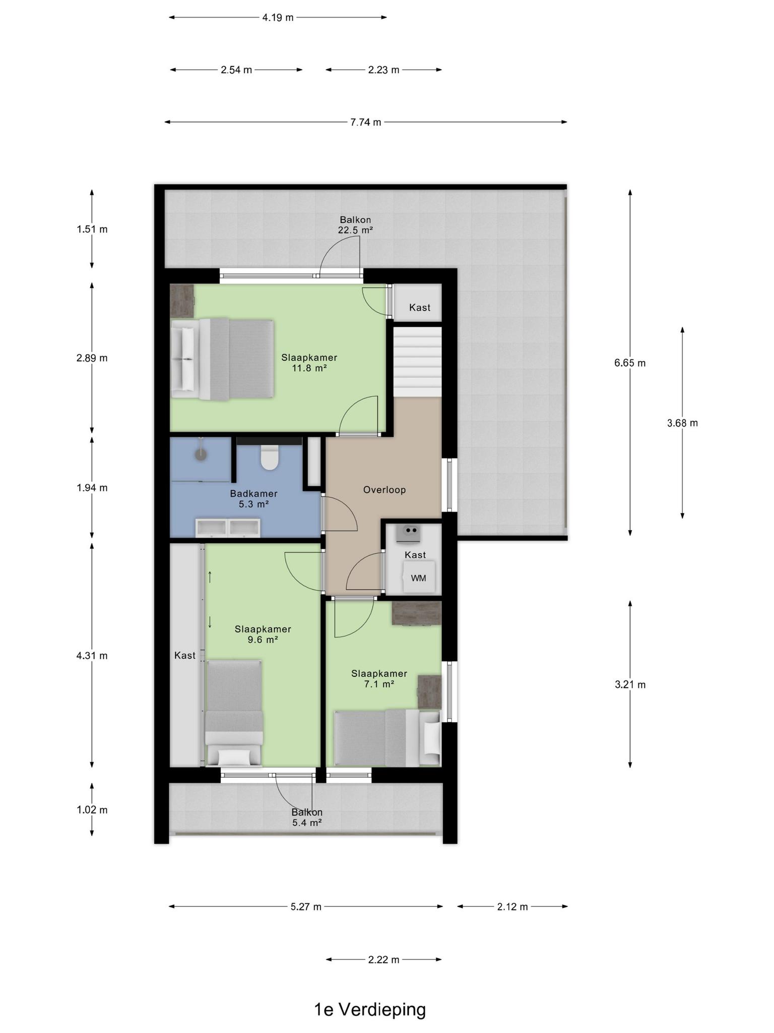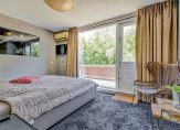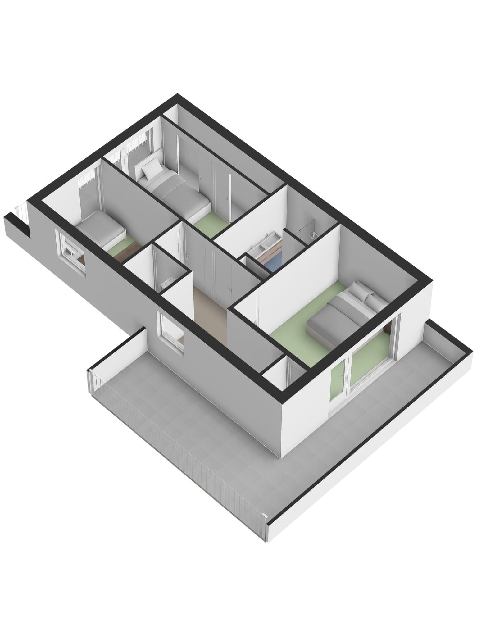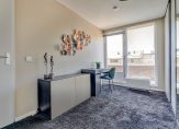 Boven vind je drie slaapkamers en een moderne badkamer. De slaapkamer aan de voorzijde heeft toegang tot een balkon op het noordwesten, heerlijk als je na een werkdag nog even wilt genieten van de avondzon. De hoofdslaapkamer ligt aan de achterzijde en biedt niet alleen een prachtig uitzicht op het groen, maar ook toegang tot een groot balkon op het zuidoosten.