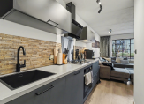 Zodra je de drempel overstapt, voel je de frisse energie van deze woning. De woonkamer van 23m² is het hart van het huis; een lichte ruimte waar je na een werkdag heerlijk neerploft op de bank met uitzicht. Koken doe je in stijl in de gloednieuwe keuken (geplaatst in oktober 2023), die werkelijk van alle gemakken is voorzien. Of je nu een snelle pasta maakt of uitgebreid borrelt met vrienden, deze ruimte is er klaar voor. Het is een plek waar je de seizoenen ziet veranderen door de grote raampartijen, met direct zicht op je eigen achtertuin op het zuidwesten. Met een tuin van 35m² heb je hier alle plek voor een loungeset, een barbecue en die felbegeerde middagzon. Omdat je op de begane grond woont, voelt het meer als een geschakelde woning dan als een appartement.