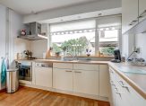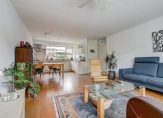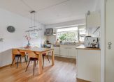 De woonkamer is licht en ruim opgezet, met voldoende plek voor een gezellige zit- en eethoek. De open keuken sluit hier mooi op aan en is voorzien van een inductiekookplaat (2023), afzuigkap, koelkast, oven en vaatwasser. Extra opbergruimte vind je in de trapkast.