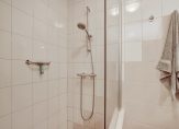 De indeling is ideaal voor wie nu of in de toekomst gelijkvloers wil wonen. Op de begane grond vind je een slaapkamer met uitzicht op de achtertuin en een badkamer met inloopdouche, designradiator en dubbele wastafel met grote spiegel, terwijl het toilet apart is geplaatst voor extra comfort en gemak.