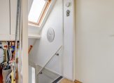 Op de ruime overloop bevinden zich de cv-ketel en de wasmachineaansluiting. Door het brede dakraam komt hier veel licht binnen. Verder zijn er twee ruime slaapkamers, waarvan één met een dakkapel en ingebouwde kasten en schotten.