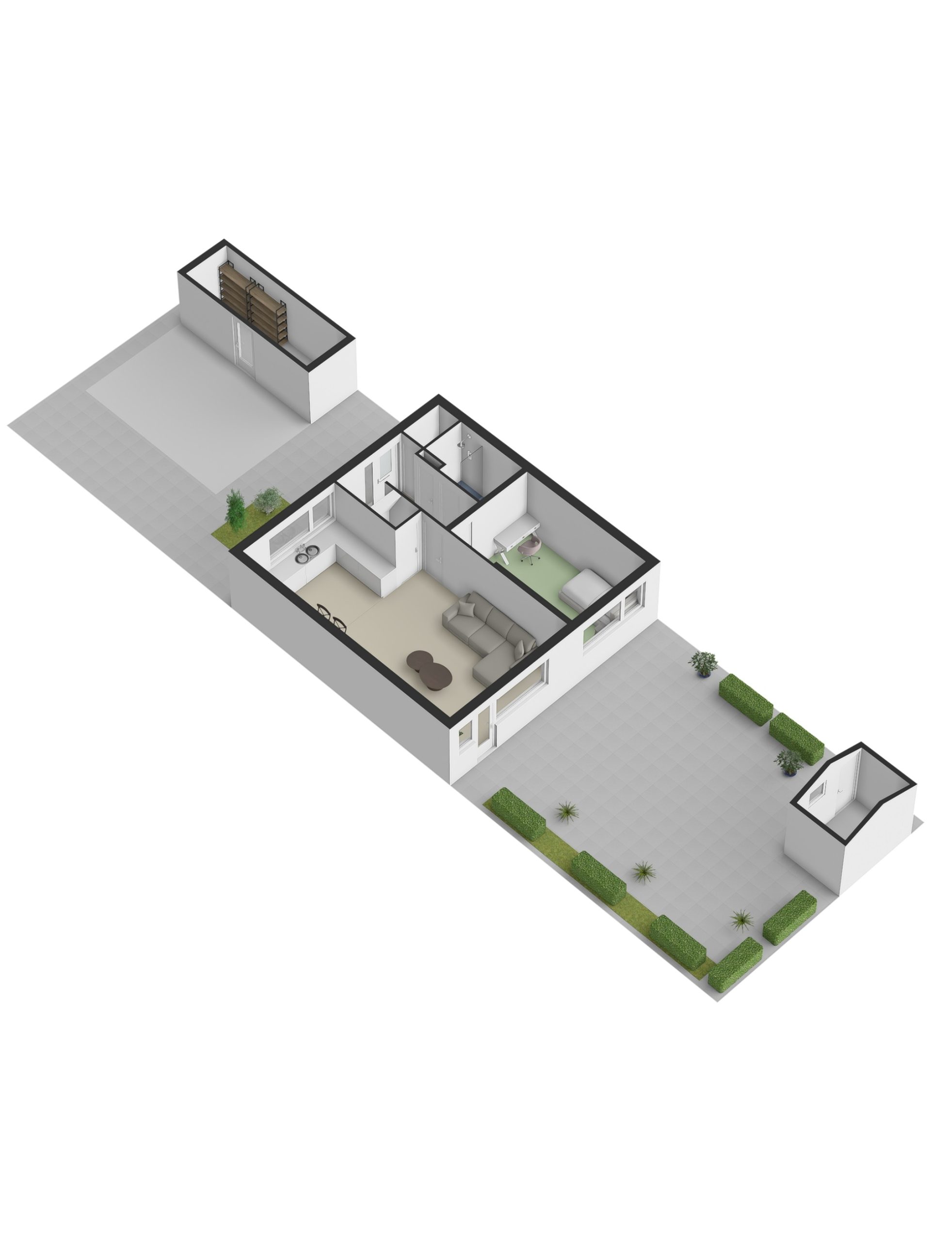 + Voldoende opbergruimte (berging + tuinhuis)