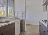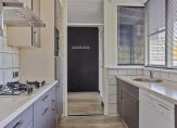 De keuken is aan de voorzijde van de woning gelegen en heeft een praktische indeling met een ruim werkblad, dankzij het dubbele keukenblok. Deze is van alle gemakken voorzien, waaronder een 4-pits gaskookplaat met RVS afzuigkap, een koelkast met vriesvak, een combimagnetron en een vaatwasser. De tweede kamer is bij de keuken getrokken en fungeert nu als ruime eetkamer, een gezellige plek om samen te koken en te eten.