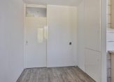 Vanuit de hal kom je in de ruime, lichte woonkamer met toegang tot het balkon. Aan de achterzijde ligt de royale slaapkamer, direct naast de badkamer met inloopdouche, wastafelmeubel en een bergkast met aansluiting voor de wasmachine.