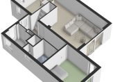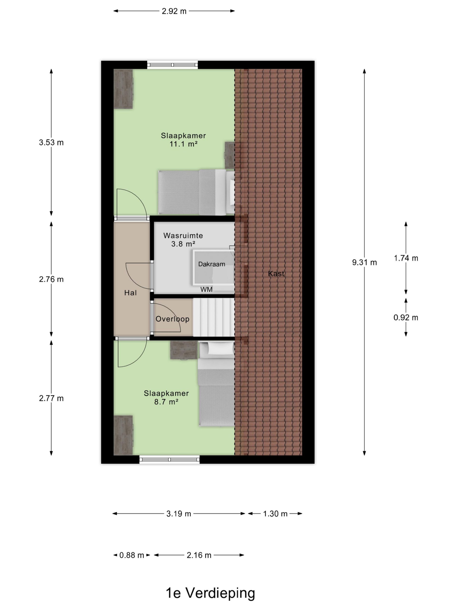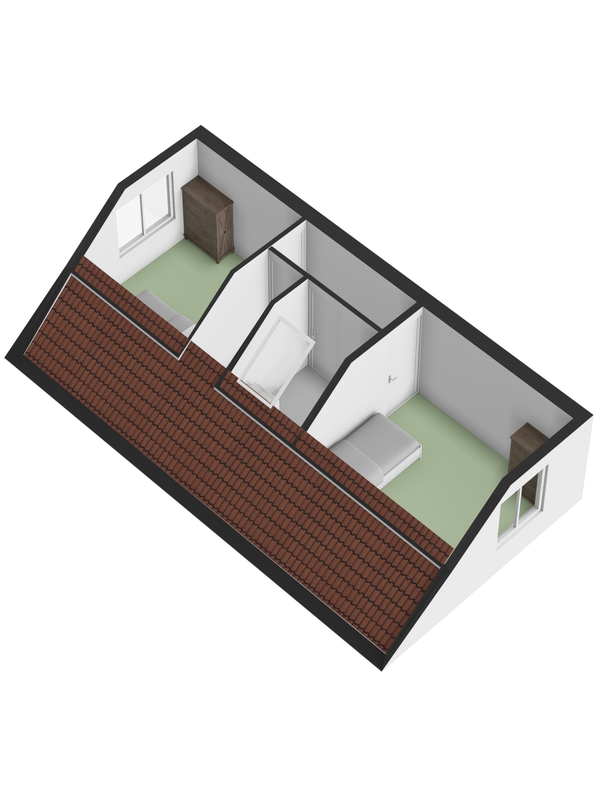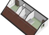 Op de eerste verdieping bevinden zich nog twee volwaardige slaapkamers. Dankzij de slimme indeling met knieschotten is er veel extra bergruimte, en de wasruimte met dakraam zorgt voor prettige lichtinval en voldoende plek voor wasmachine en voorraad, netjes uit het zicht maar goed bereikbaar.