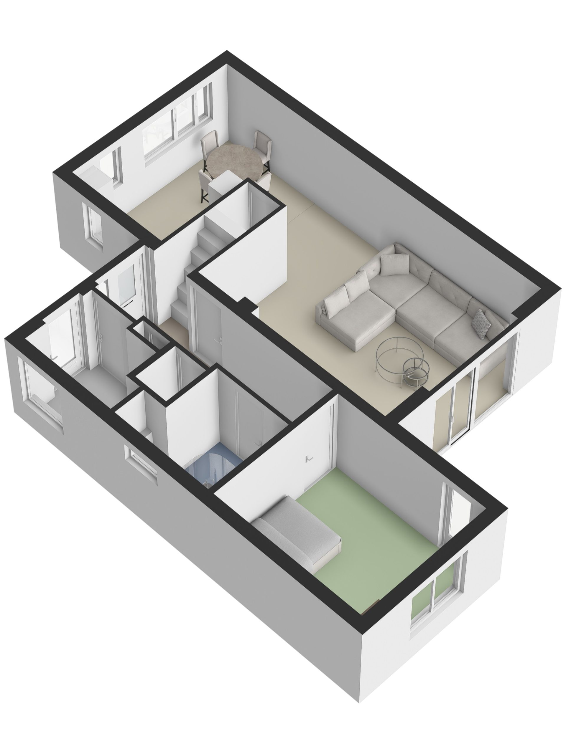 De woning is ontworpen voor de toekomst. De lichte, tuingerichte woonkamer (ca. 30 m²) biedt veel privacy en staat in open verbinding met de keuken, die van alle gemakken is voorzien. Het grote pluspunt is het volledige woonprogramma op de begane grond, met een ruime slaapkamer die directe toegang biedt tot de badkamer, voorzien van douche, wastafel en toilet. Daarnaast is er een aparte, gescheiden wc en een berging met aansluiting voor de cv-ketel.