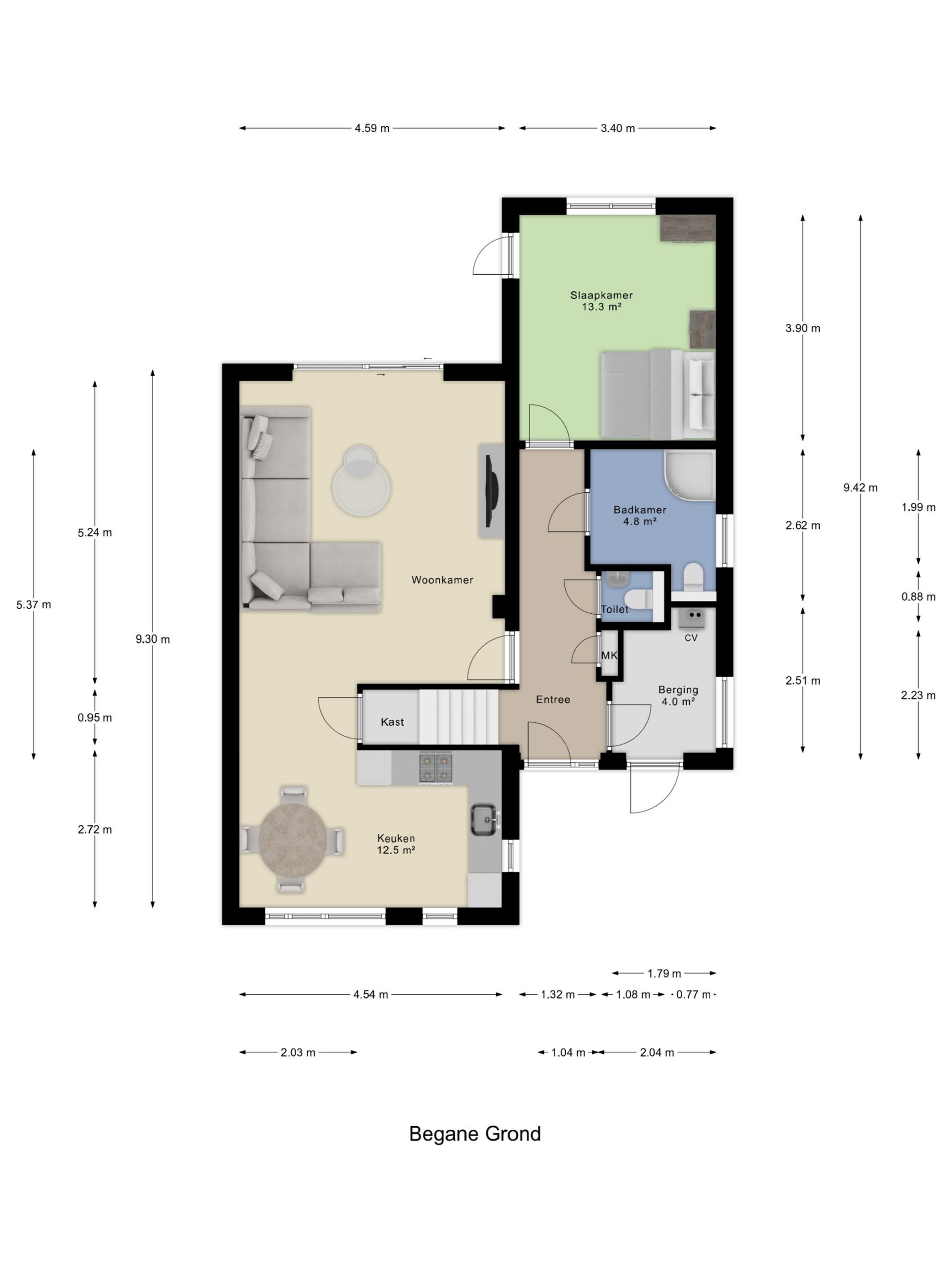 Alle vermelde afmetingen zijn indicatief. Aan eventuele afwijkingen kunnen geen rechten worden ontleend.