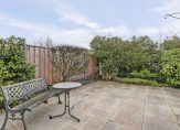 De achtertuin ligt op het zonnige zuidoosten en grenst aan een rustige waterstrook. Door de beschutte hoekligging ervaart u hier veel geborgenheid en privacy. Achter in de tuin staat een extra vrijstaande berging, zodat u voldoende ruimte heeft voor fietsen en tuinkussens.