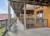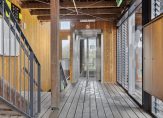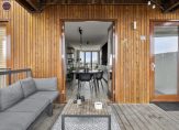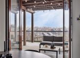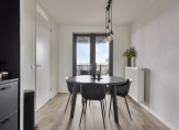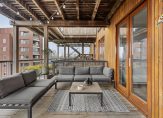 Aan de galerijzijde heb je via openslaande deuren toegang tot het terras. In de zomer kan je ze open zetten, waardoor het eetgedeelte en het terras één geheel vormen.