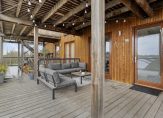 Het terras van ongeveer 14 m² ligt op het zuidoosten en heeft een vrij uitzicht over de wijk. De houten balken geven het terras een rustieke uitstraling en een gezellige sfeer.