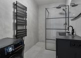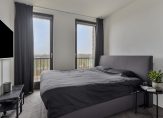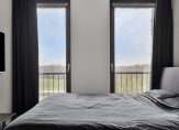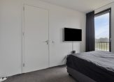 Het toilet is modern afgewerkt met cement gestucte muren en grijze betontegels. De badkamer (circa 5 m²) heeft dezelfde strakke uitstraling, met een mat zwarte wastafel met meubel, een grote spiegel en een inloopdouche. De slaapkamer van 13 m² heeft ruimte voor een groot bed en bureau en heeft bovendien een ingebouwde kast met de cv installatie. De woonkamer is heerlijk licht en heeft een Frans balkon met uitzicht op Meinerswijk. Vanuit de woonkamer loop je zo de tweede slaapkamer van 12 m² in.
