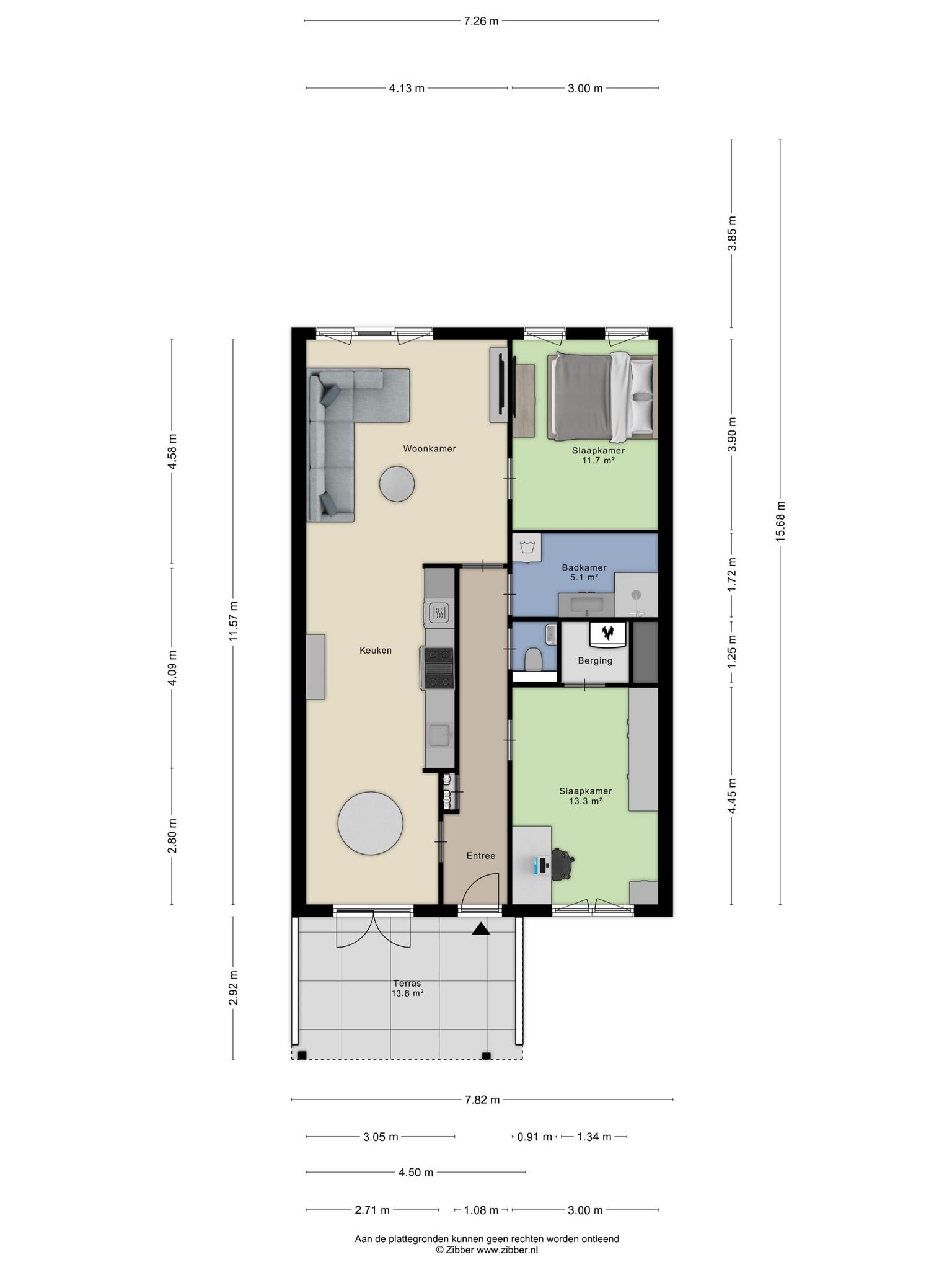 De vermelde afmetingen zijn circa maten. Eventuele afwijkingen tussen de werkelijke en opgegeven circa maten/oppervlakten leiden niet tot enig recht op schadevergoeding. Er kunnen geen rechten worden ontleend aan de inhoud van deze specificaties.