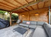 Achterin de tuin staat de robuuste overkapping (dak aangepast in 2025), ideaal voor lange zomeravonden. De tuin is bovendien voorzien van een compleet Inlite-verlichtingssysteem en elektra.