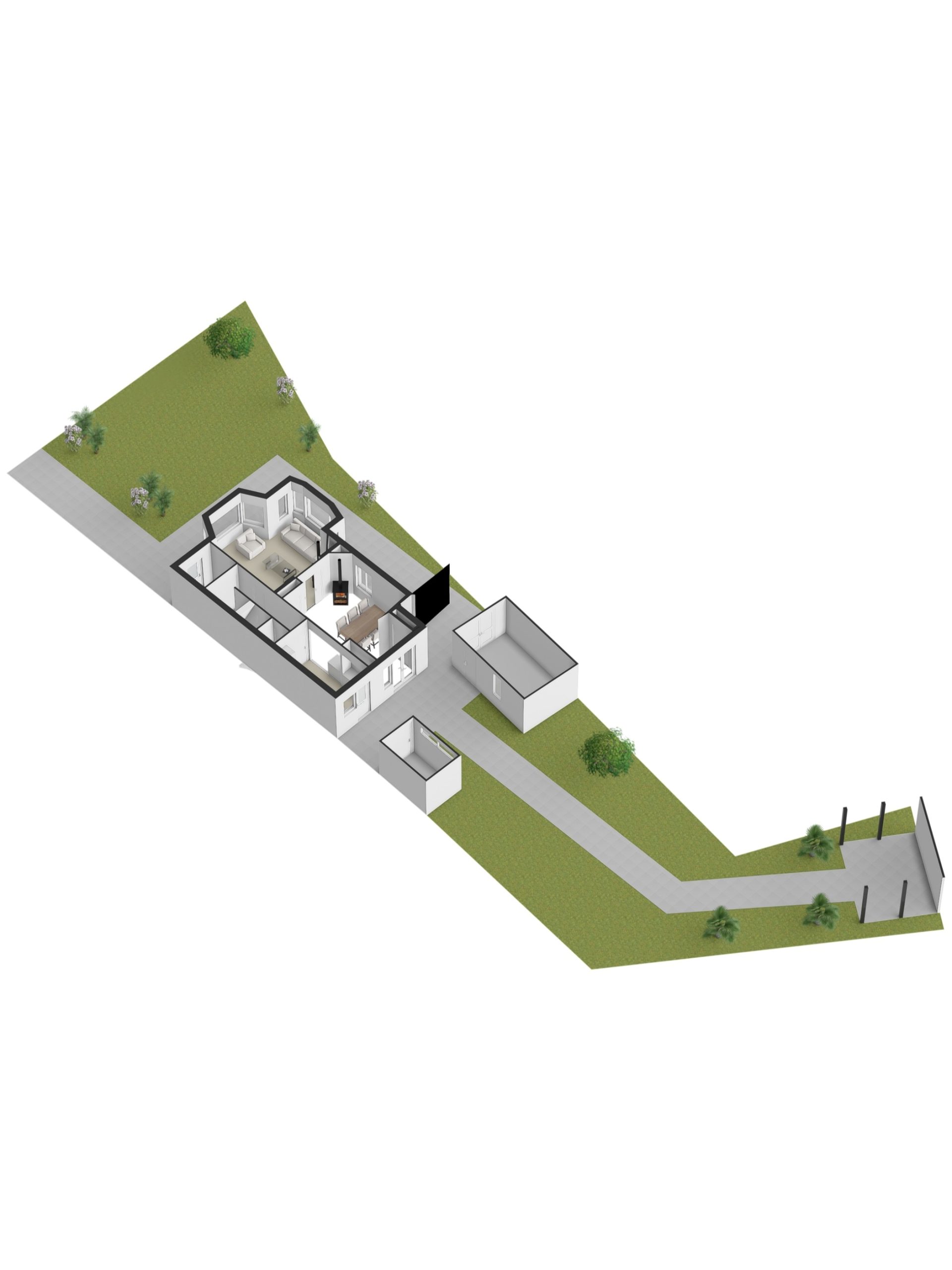 Je vindt hier ook een vrijstaande stenen berging en een royale, vrijstaande stenen garage met ruimte voor één auto. Je parkeert met gemak meerdere auto’s op je eigen oprit.