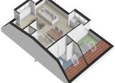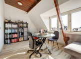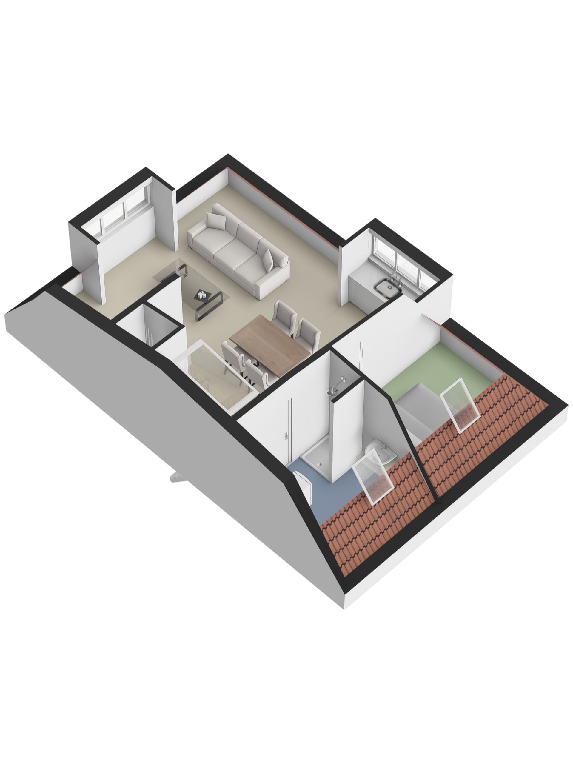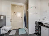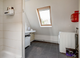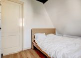 De slaapkamer heeft een Velux dakraam. De badkamer is voorzien van een wastafelmeubel, douche, vrijhangend toilet en een plek voor de was- en droogmachine. Hier bevindt zich ook de combiketel uit 2008.